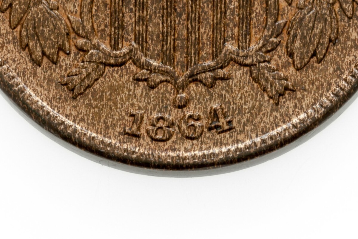 1864 Gran Lema US 2 Centavos En Condición BU, Color Marrón, Brillo Fuerte!