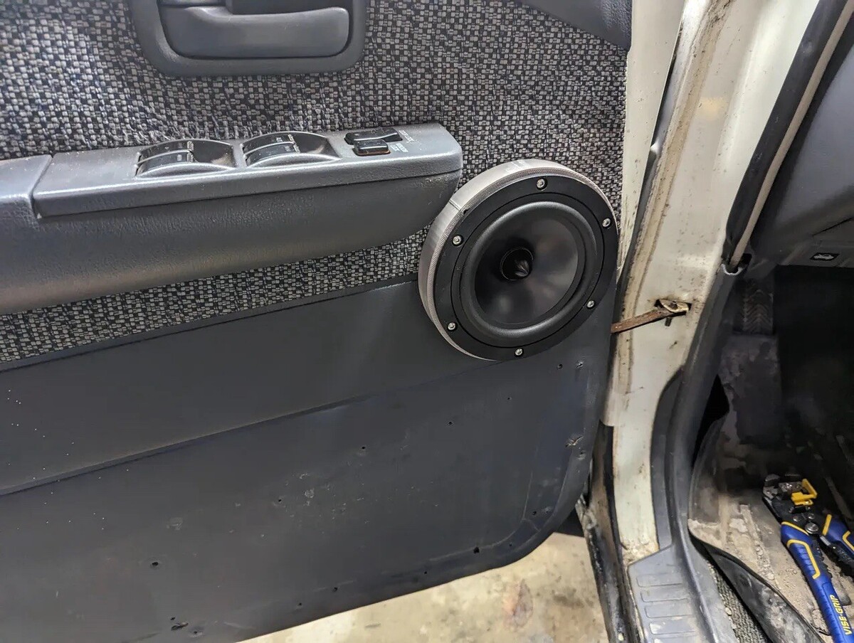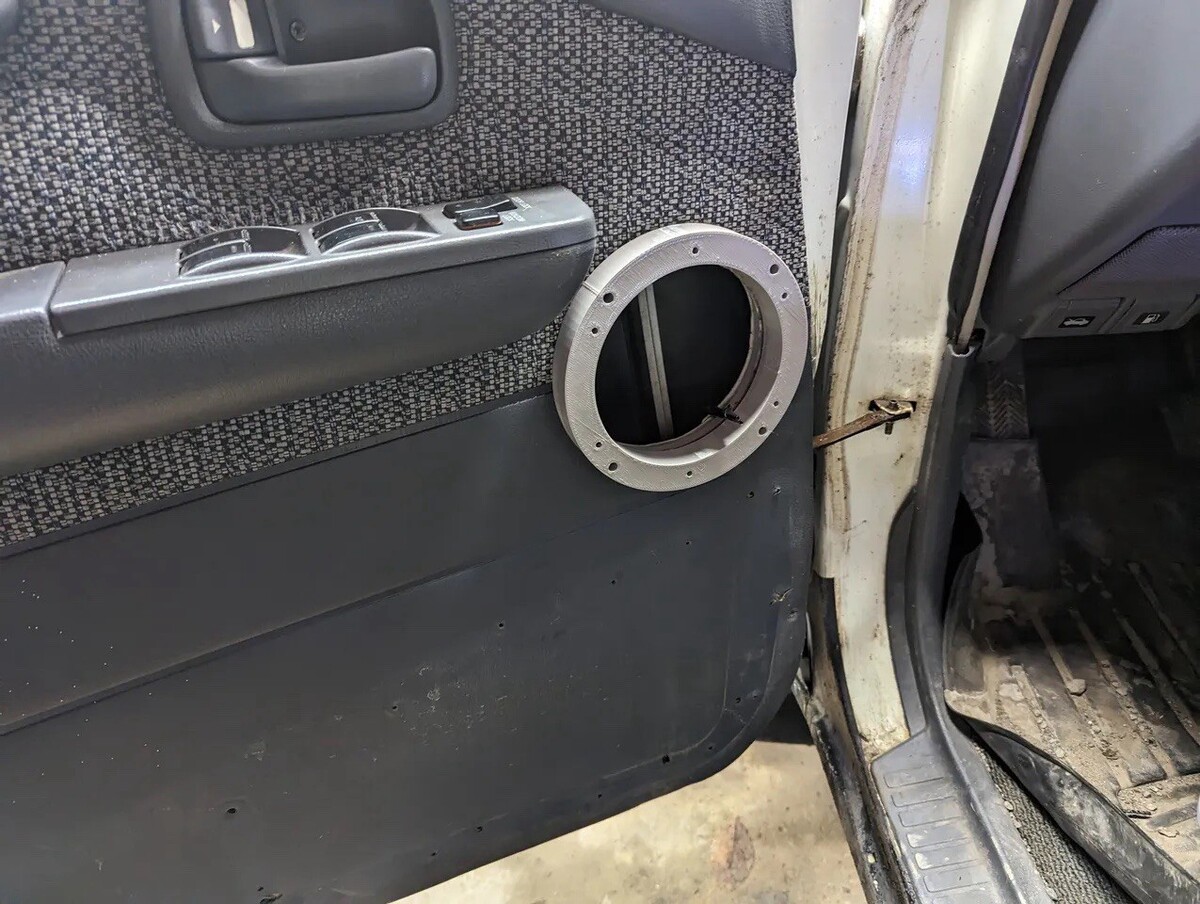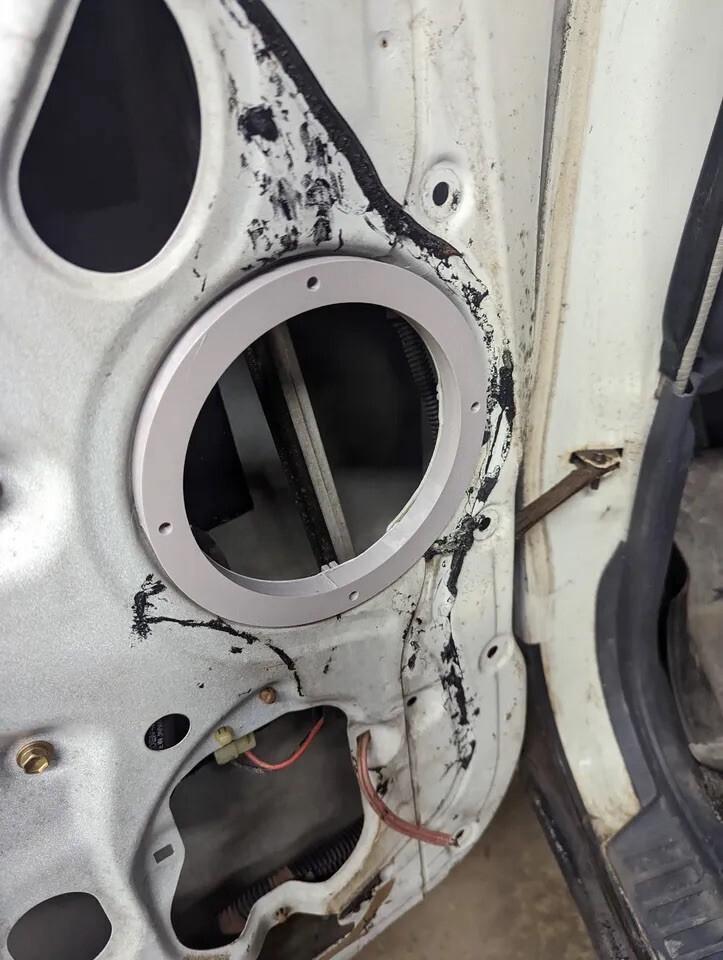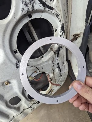 This is front speaker adapter is made to both provide magnet space, and convert the size from 4.5" to 6". Used to mount dayton reference 6" midbass drivers into the front door.