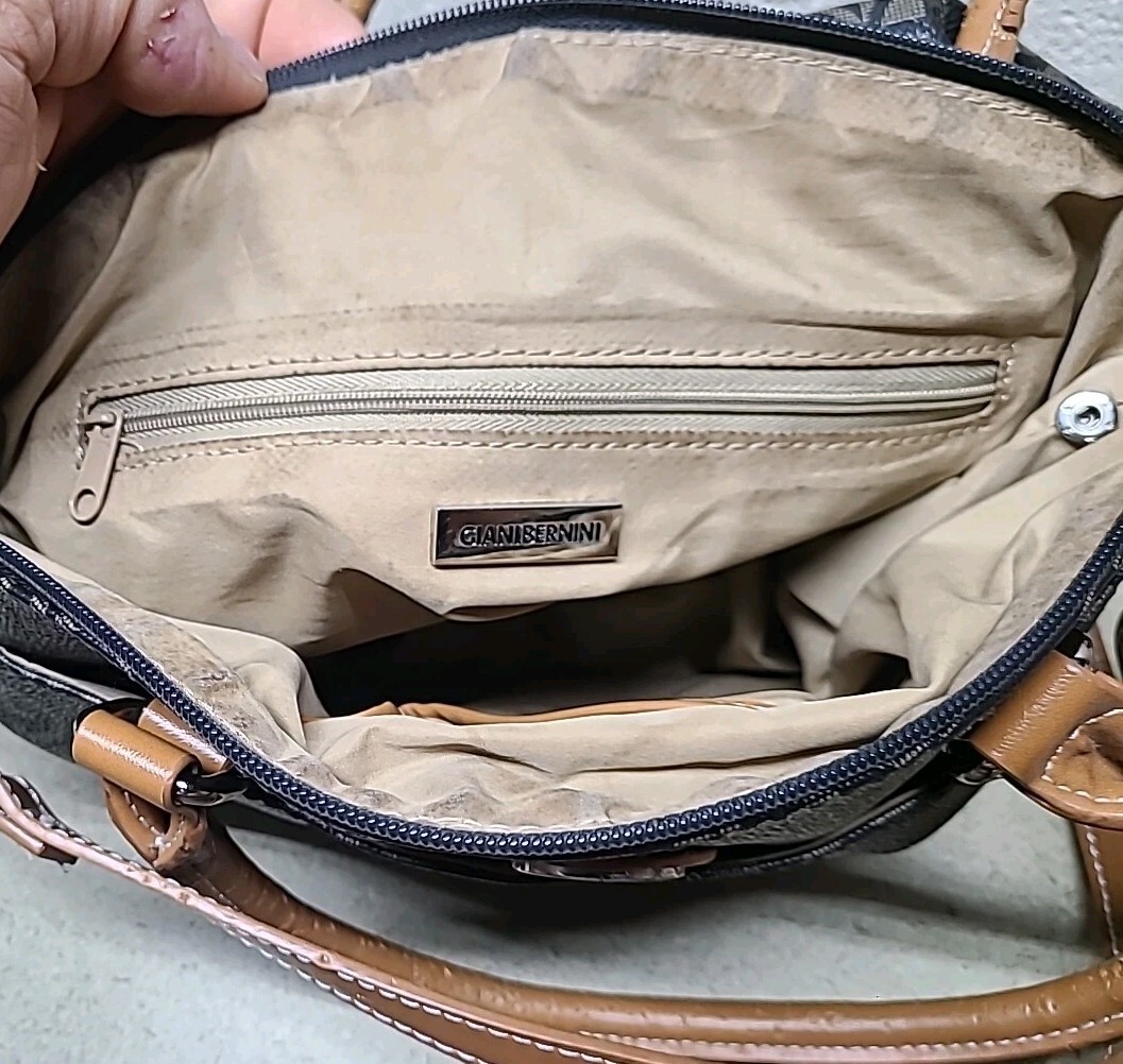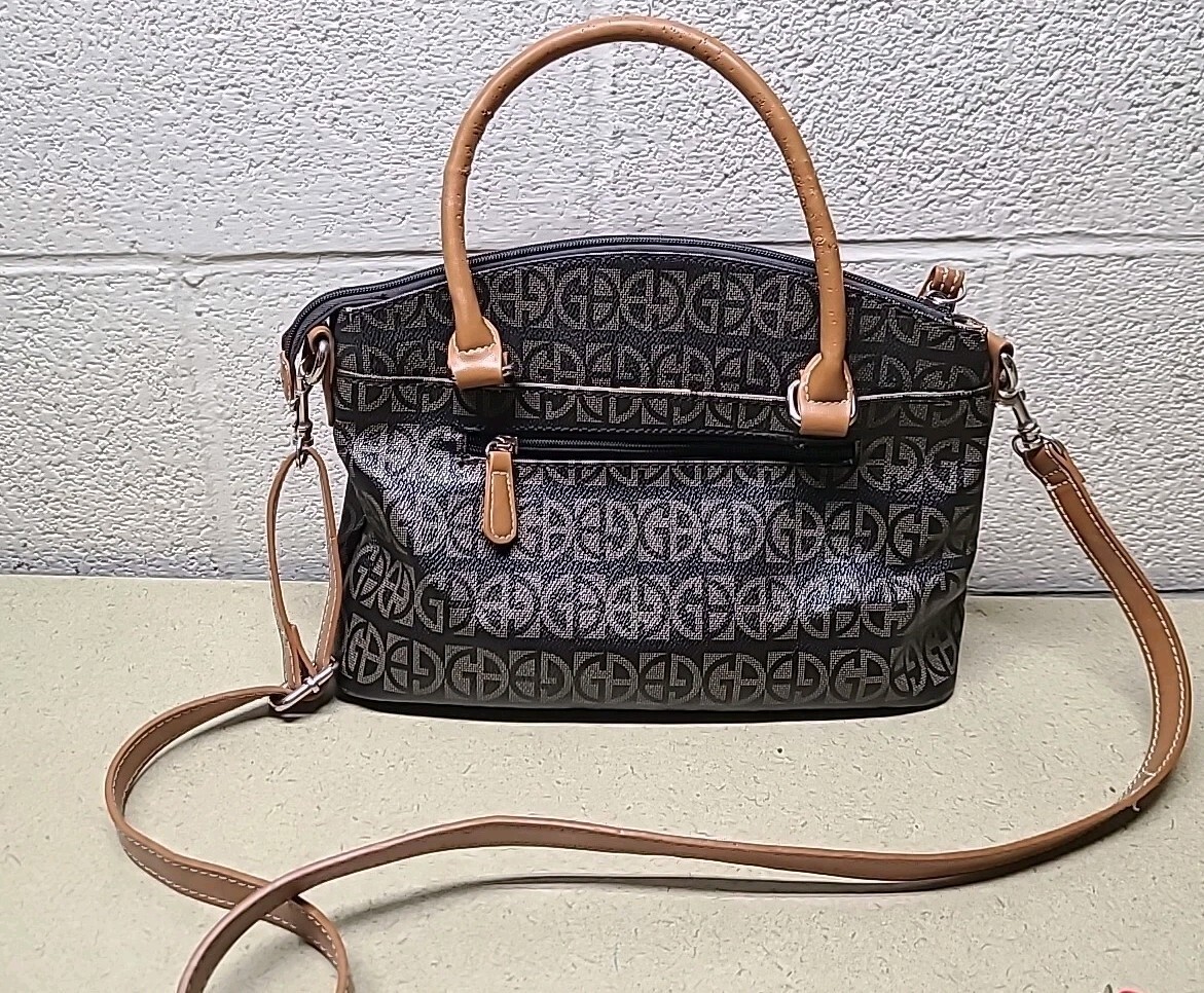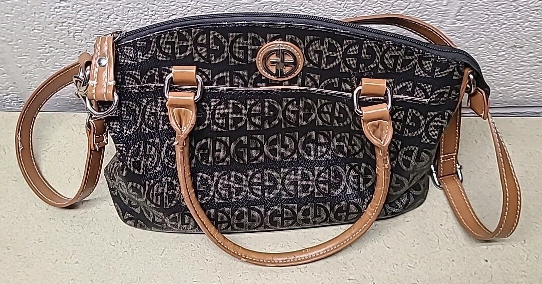 Giani Bernini Brown Signature Silver Block Signature Satchel Bag Purse