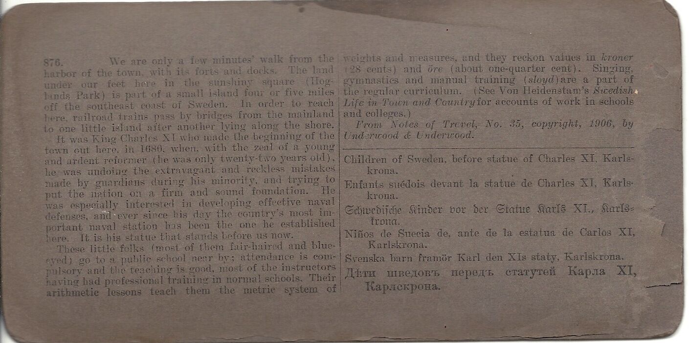 Stereoview Slide Children of Sweden, Charles XI Square 1905