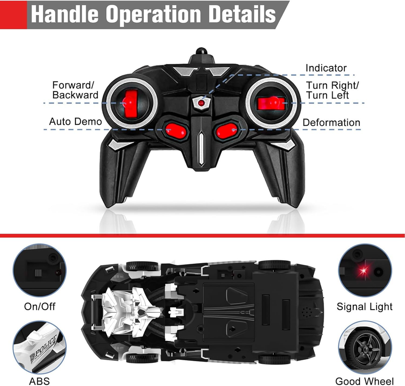 High-quality Rc Car Toy Gifts for Kids: Best gifts choice for your children. Package Content: 1*RC Transform Car, 1*Remote Controller, 1*Screwdriver, 1*Car Battery, 1*Car Battery Charger.
