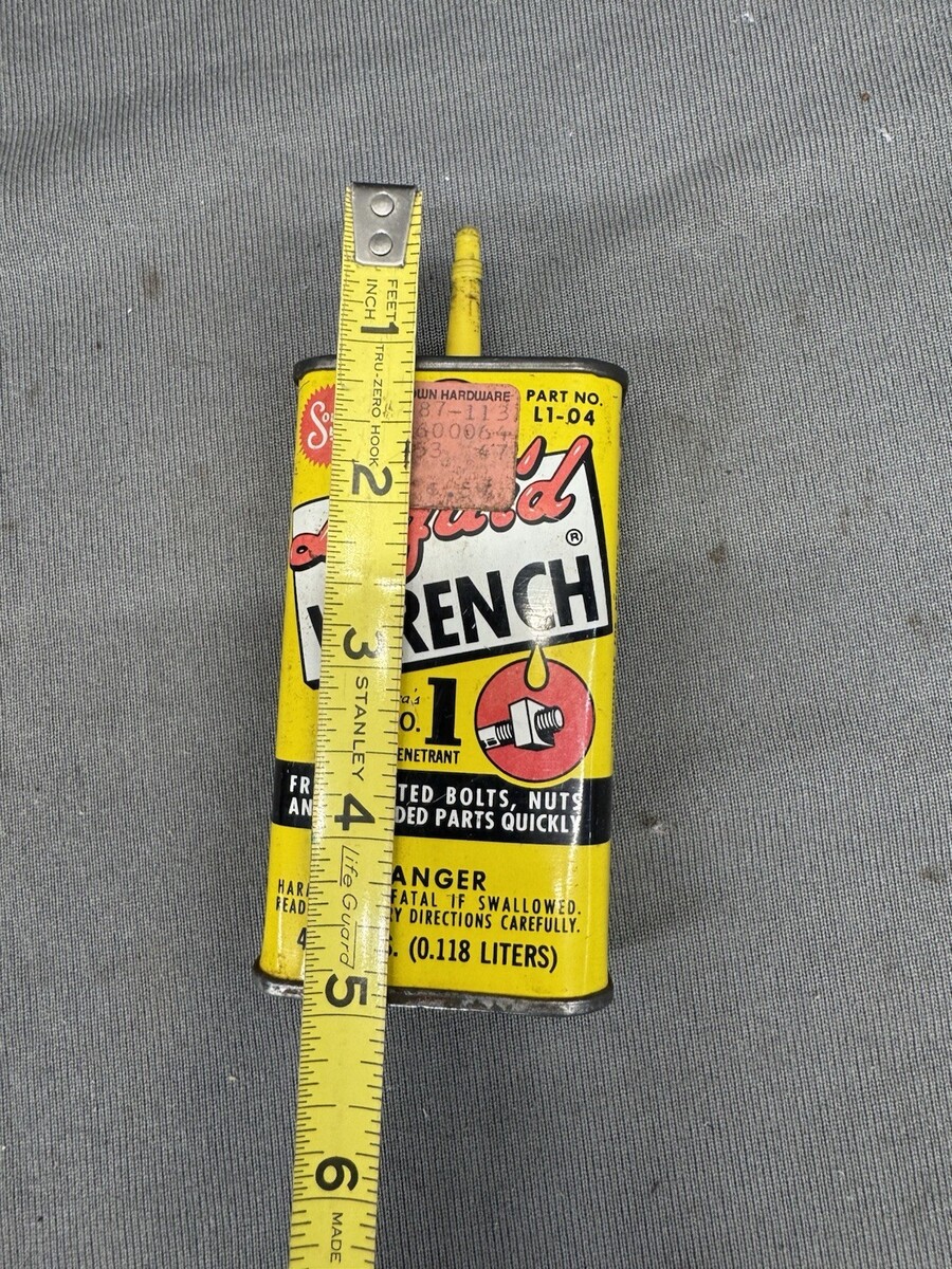 Empty Early Vintage Liquid Wrench Oiler 4 Oz. Display Can Solder Seal Penetrant