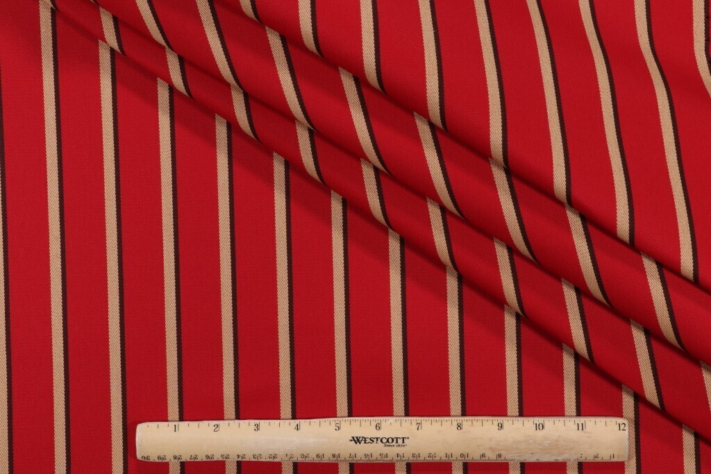 SUNBRELLA 5603 HARWOOD CRIMSON RED GOLD STRIPE OUTDOOR WOVEN FABRIC 1.4 YD 54"W