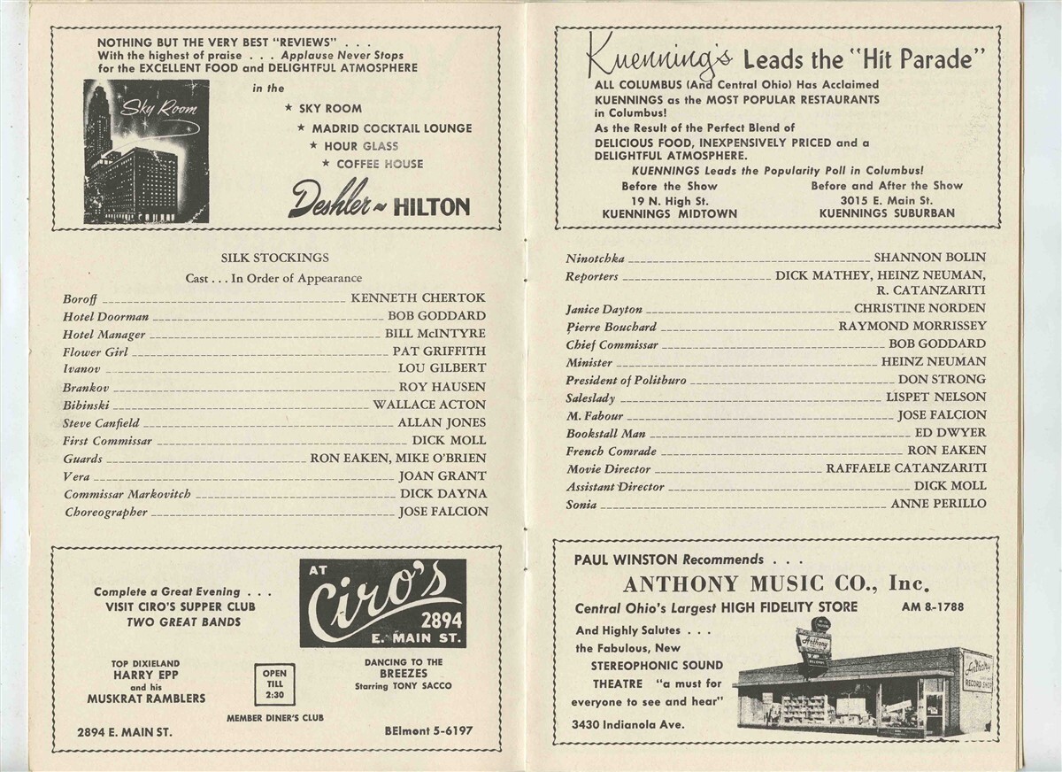 Silk Stockings Souvenir Program Paul Winston's Music Theatre 1957 Dayton Ohio