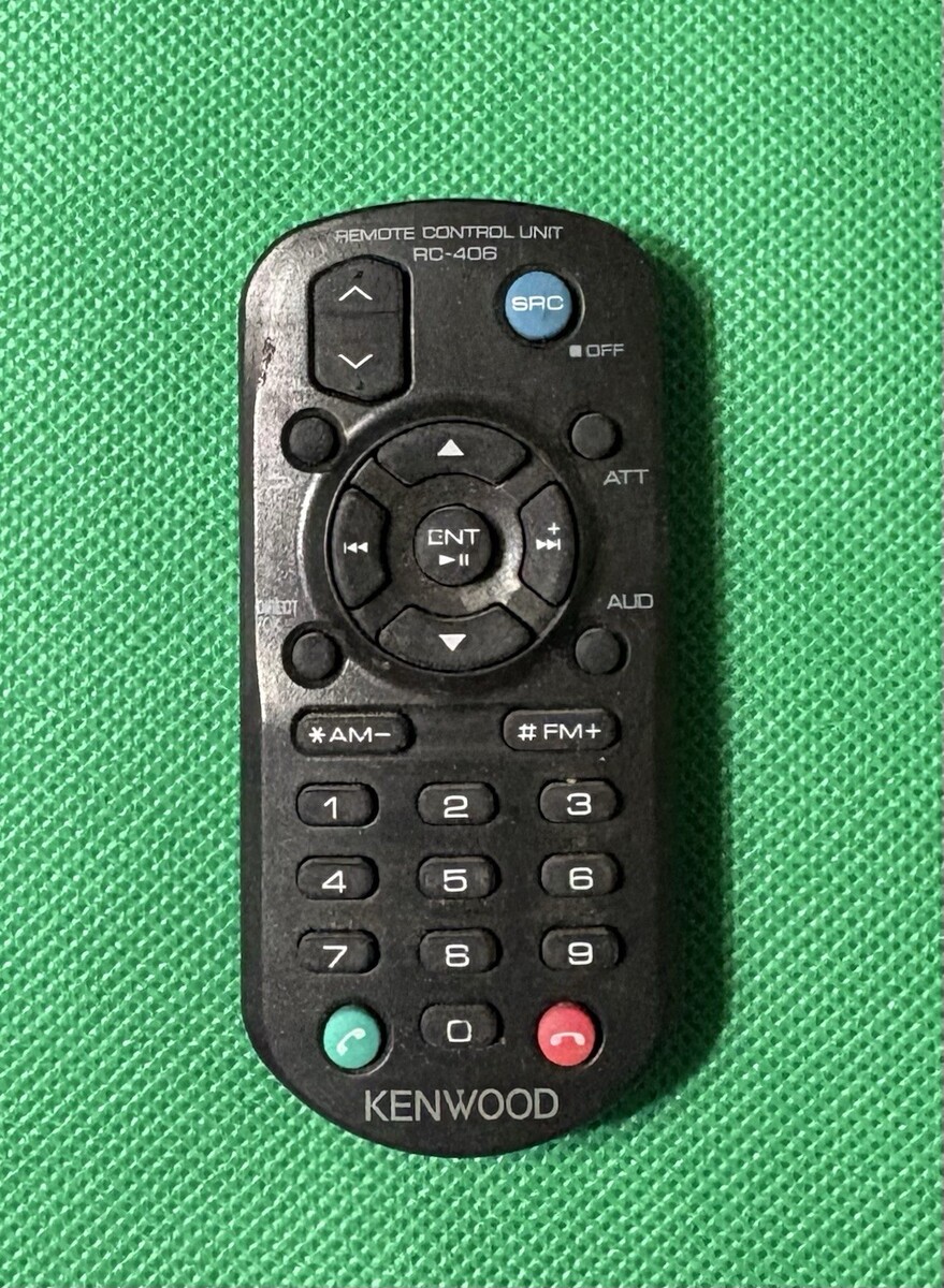 Original Kenwood RC-406 remote control unit for compatible Kenwood car stereos.