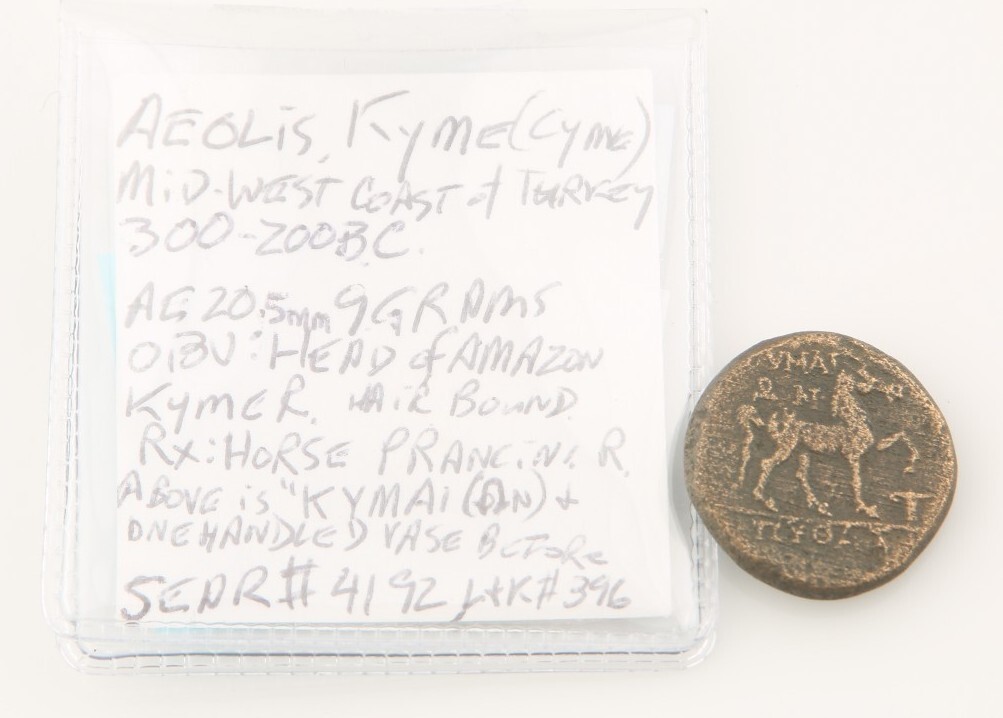 300-200 BC griego Ae20 Coin Vf Aeolis Amazon Kyme Cyme Horse Sear#4192 L K#396