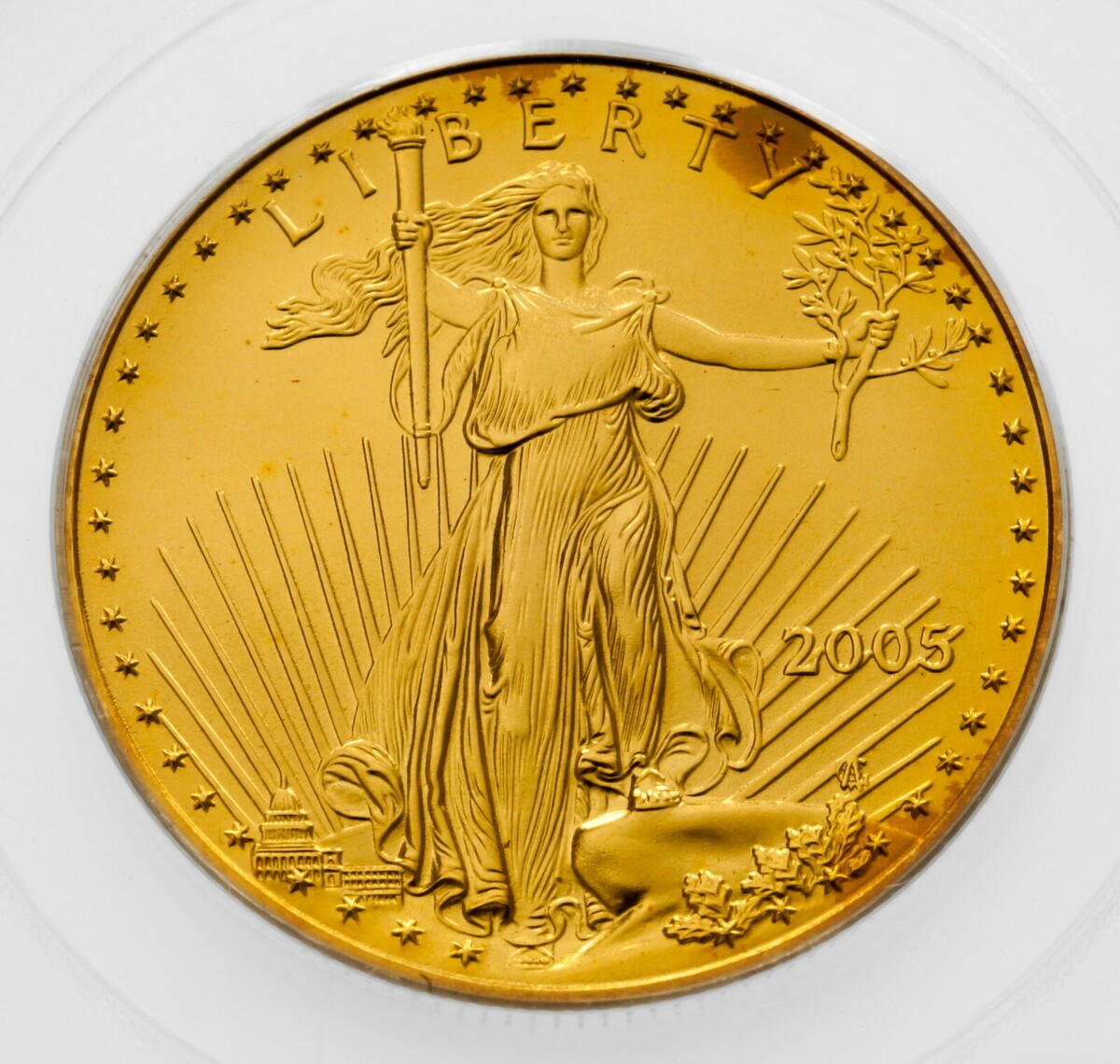 2005 g $ 25 1/2 oz. Gold American Eagle classificato da PCGS come primo sciopero MS-70
