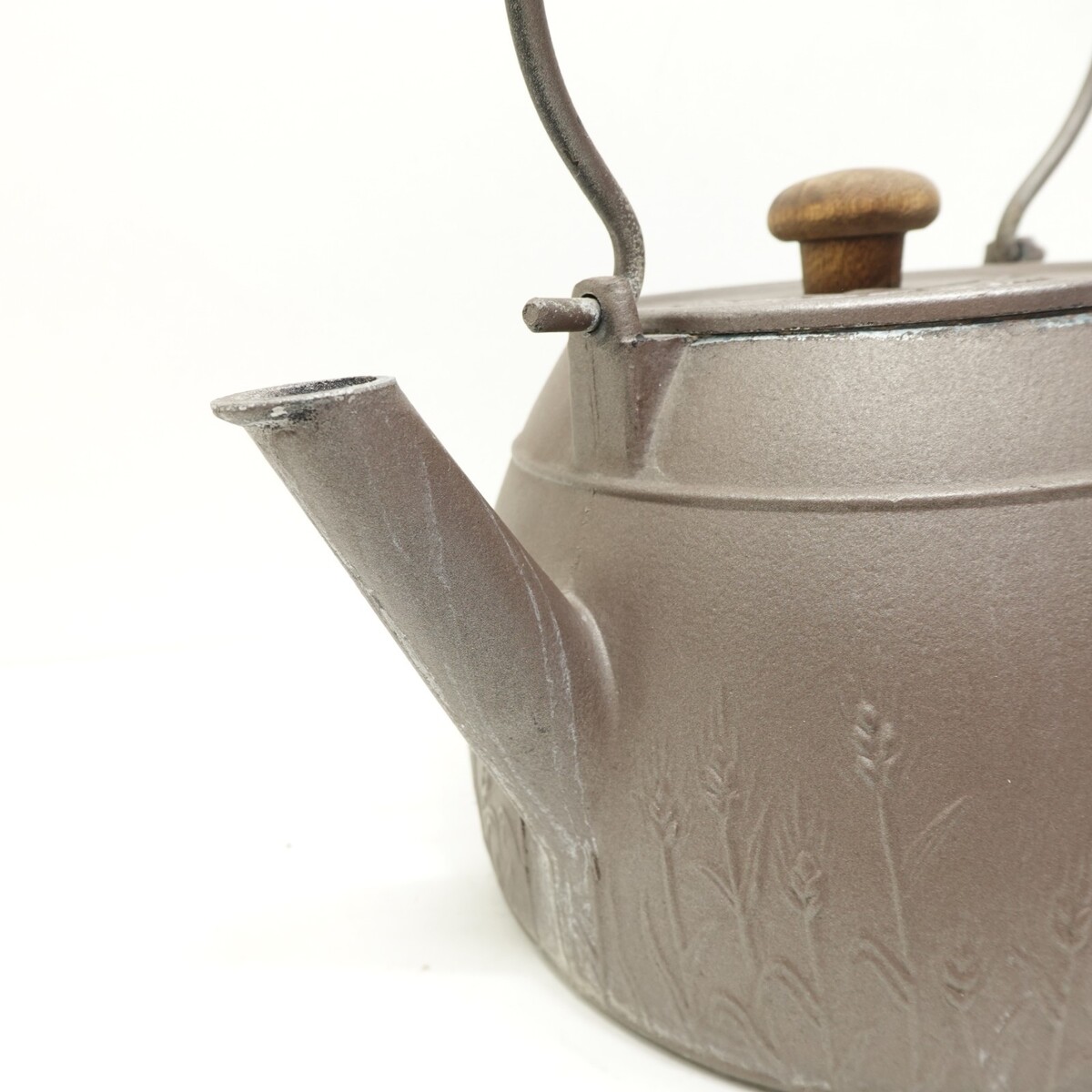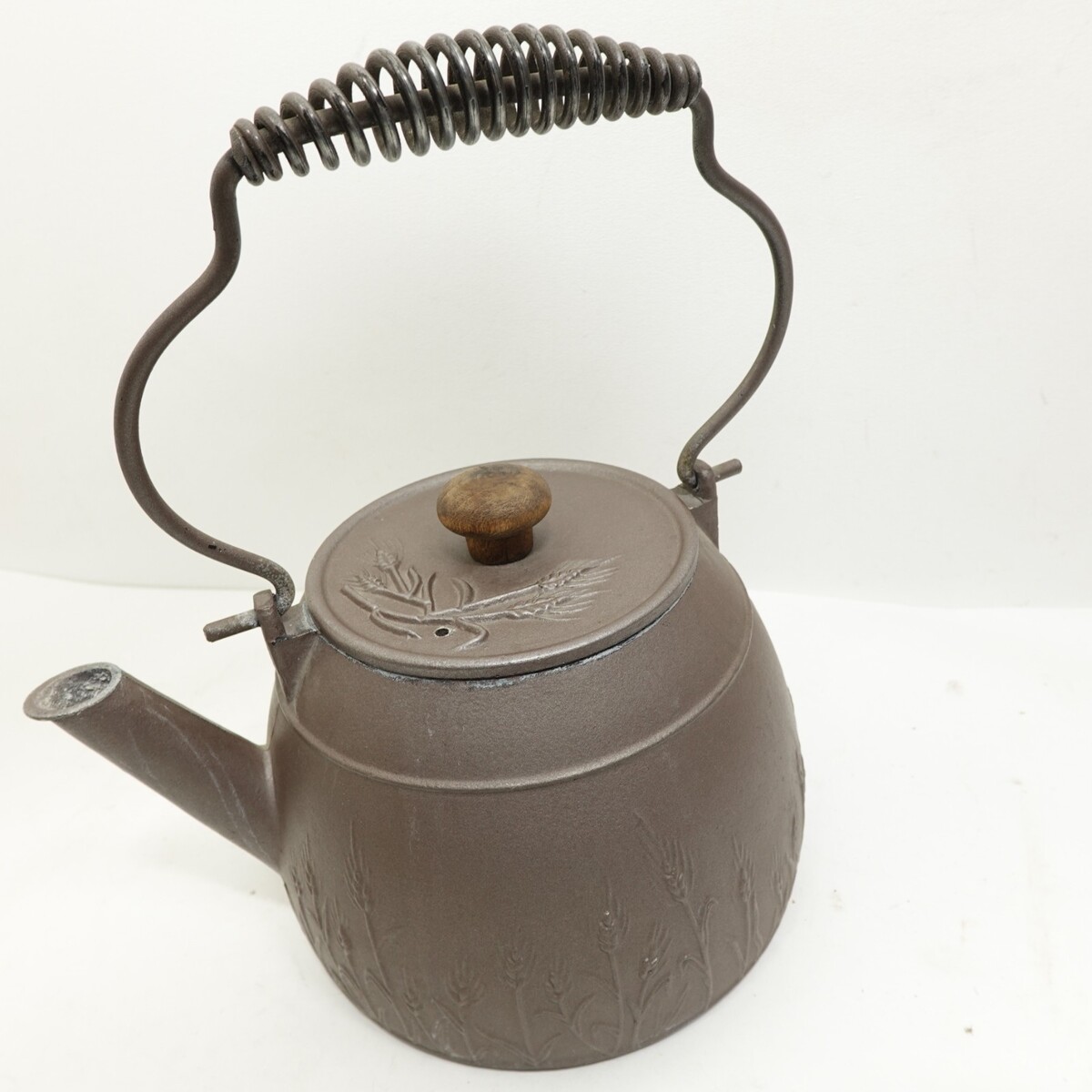 This kettle has a farmhouse-style look and works well as rustic kitchen decor or a functional stovetop kettle for display or light use.