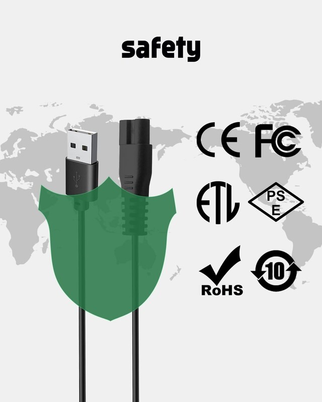 ?Parameters? Input: AC 5V USB Type-A; Output: DC 5V 1A 5W(max) 2 Prong Plug; Power cord length: 3.3ft/1m. Bend lifespan of more than 6000 times. with 1 Cleaning Brushes