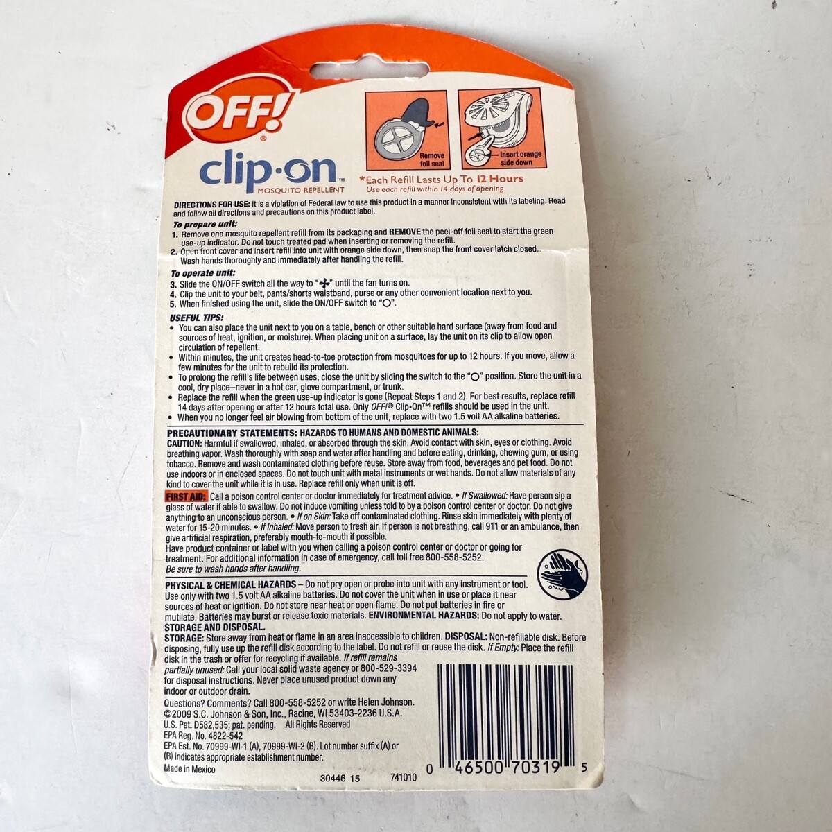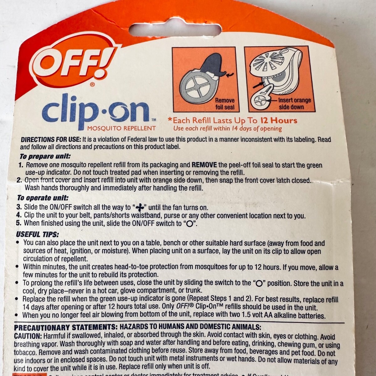 OFF! Clip-On Mosquito Repellent Refills, 1 Pack w/2 Refills , New Sealed, 12 hrs