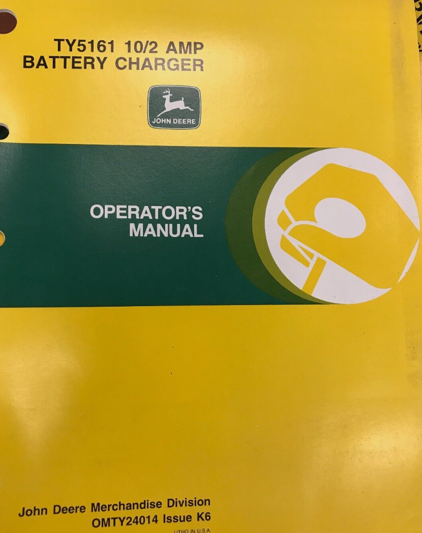 John Deere Operators Manual TY5161 10/2 AMP Battery Charger OMTY24014 K6