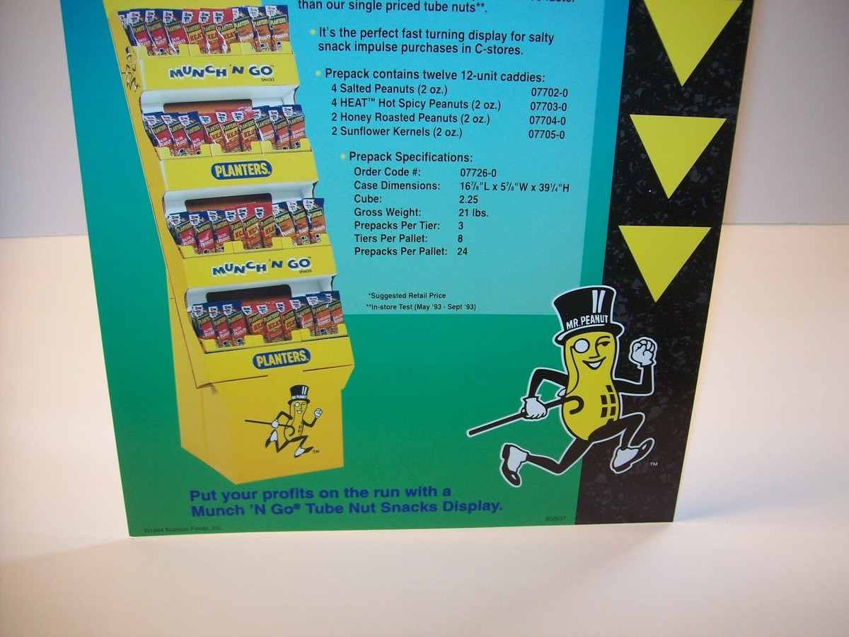 Planters Peanut Vintage Munch N Go Floor Display Promo Paper Sales Flyer 1994