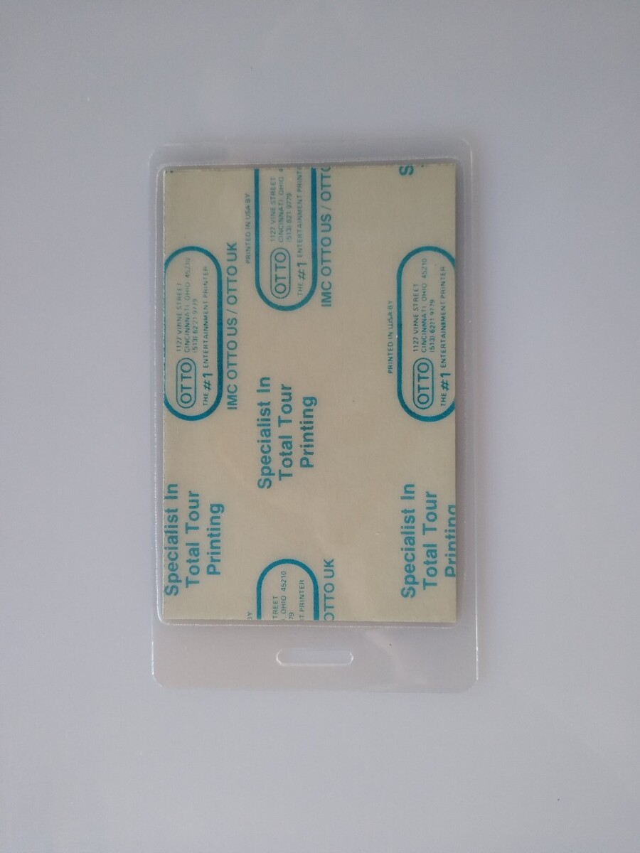 Unused old stock. Original vintage plastic laminated backstage pass for prior music event. Size is 4.25" x 2.5". More music related memorabilia for sale in our store.