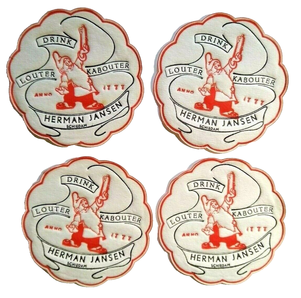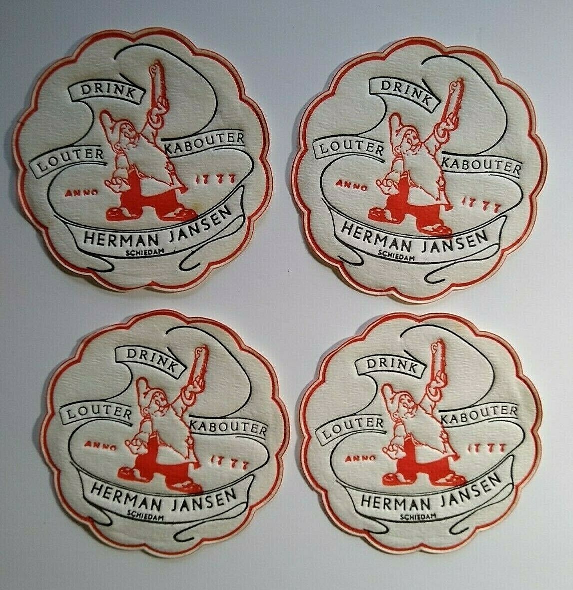 Gnome Drink Coasters Fabric Dwarf Louter Kabouter Herman Jansen 1950s Lot of 4