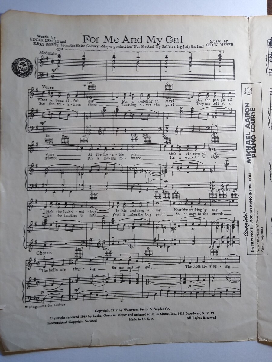 For Me And My Gal Sheet Music Judy Garland 1945 Song Edgar Leslie Geo Meyer