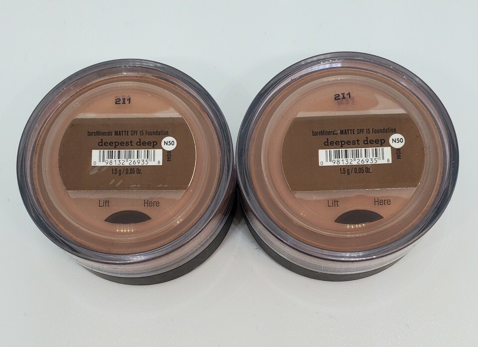 Lot of 2 bareMinerals Matte Loose Foundation SPF 15 Deepest Deep N50 1.5g/0.05oz