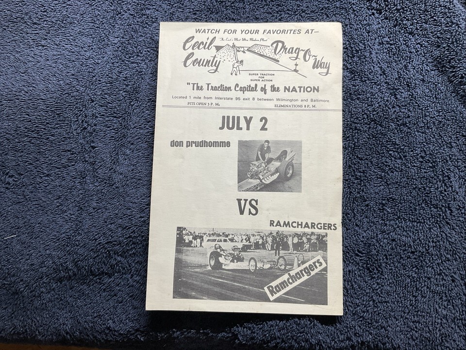 1960s Cecil County Drag-O-Way Program Car Race Drag Race - PRUDHOMME RAMCHARGERS