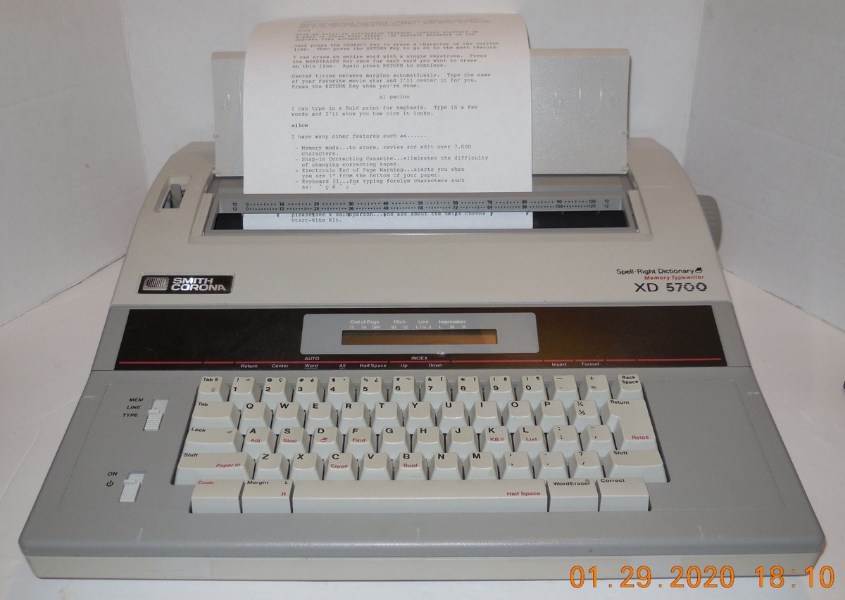 Smith Corona Spell Right Dictionary XD 5700 Memory Typewriter with Cover