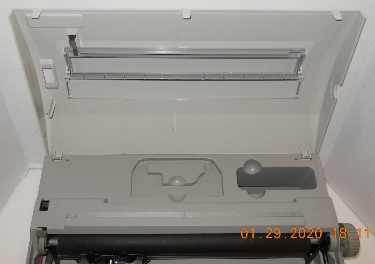 For Sale is a Used but in good Condition Smith Corona Spell Right Dictionary XD 5700 Memory Typewriter with Cover TESTED and Works. Back panel where power cord goes is broken and does not stay closed that is why there is tape there to keep the power cord panel closed securely. Dimensions are 15 x 12 x 12 inches. this item will be Double Boxed. Please see photos for more details. Please ask any and all questions prior to purchasing. Fast same or next day shipping with delivery confirmation within the U.S.