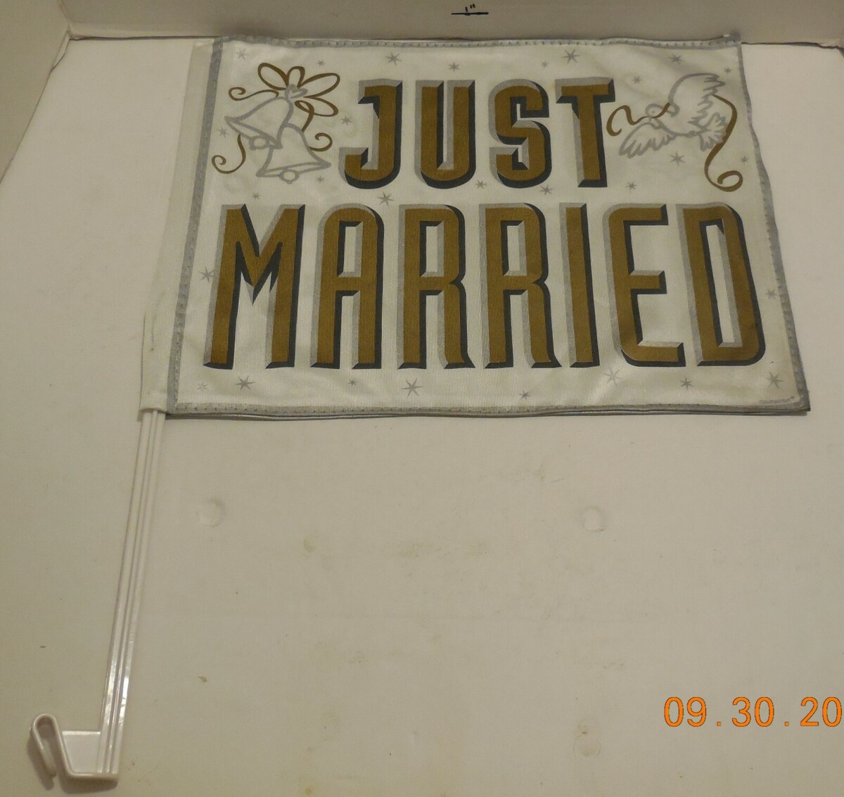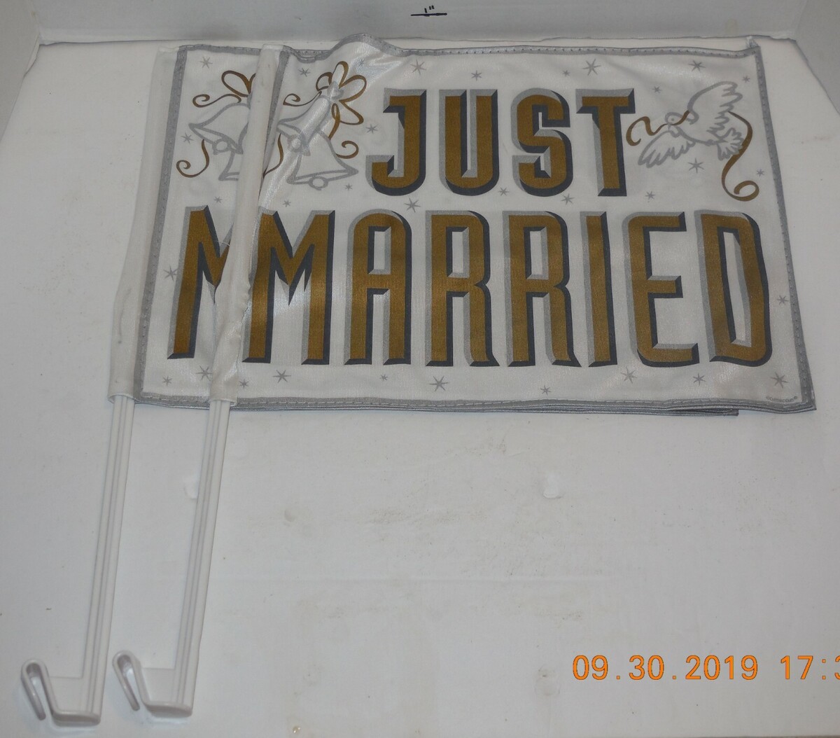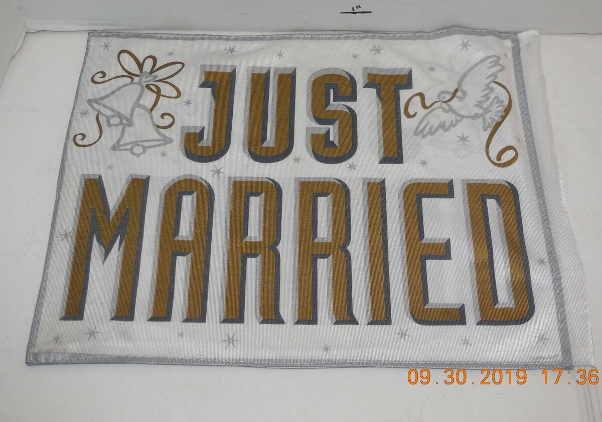 For Sale is a Wedding Just Married Car Window Flag. Its In good used Condition with Some Minor Handling wear as pictured. Please ask Any and All Questions prior to purchasing. Fast Same or Next day shipping with Free Delivery Confirmation within the U.S. Payment Due within 7 days of purchase (if you need more time please let us know In advance) we love to combine shipping is always a Yes and Most of the time Additional Items Ship for free.