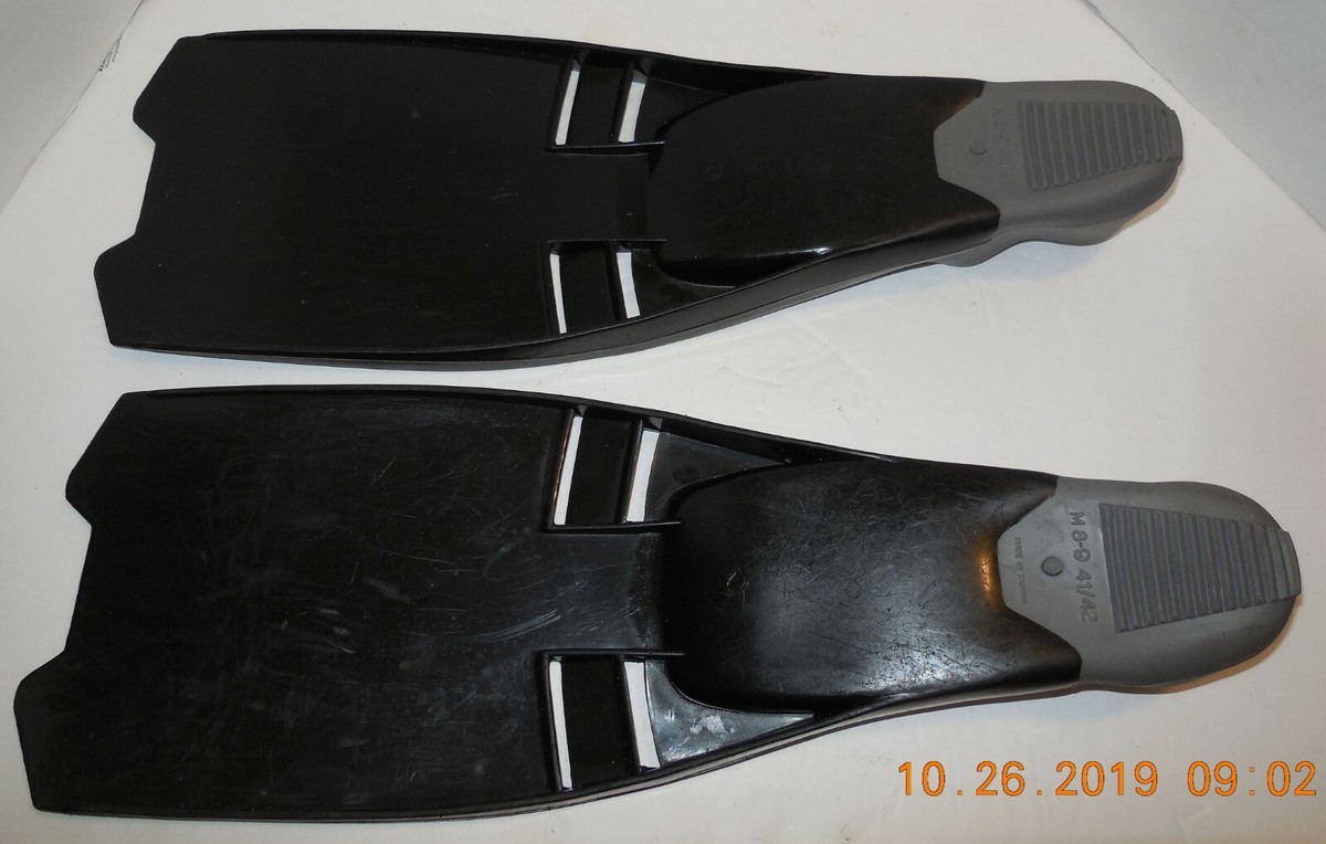 For Sale is a pair of Black DIVING FINS FLIPPERS SIZE M 8-9 41/42 MADE IN Taiwan Scuba. its in good used Condition as pictured. Please ask Any and All Questions prior to purchasing. Fast Same or Next day shipping with Free Delivery Confirmation within the U.S. Payment Due within 7 days of purchase (if you need more time please let us know In advance) we love to combine shipping is always a Yes and Most of the time Additional Items Ship for free.