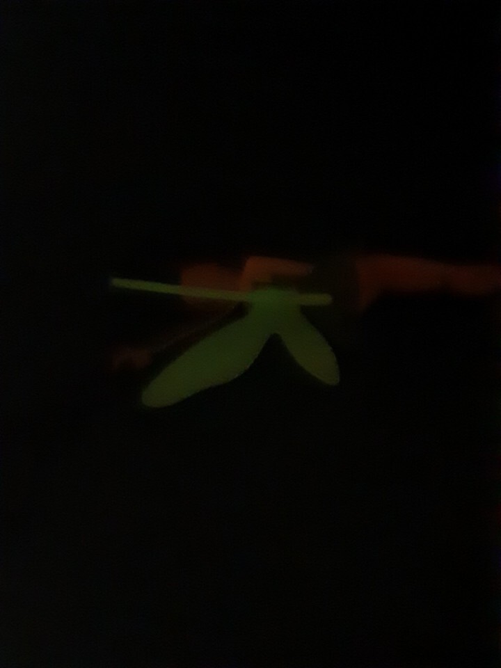 Tinkerbell's wings flap when you push the button. Her wings glow in the dark. (I tried to get a picture of that but it didn't turn out so good.)