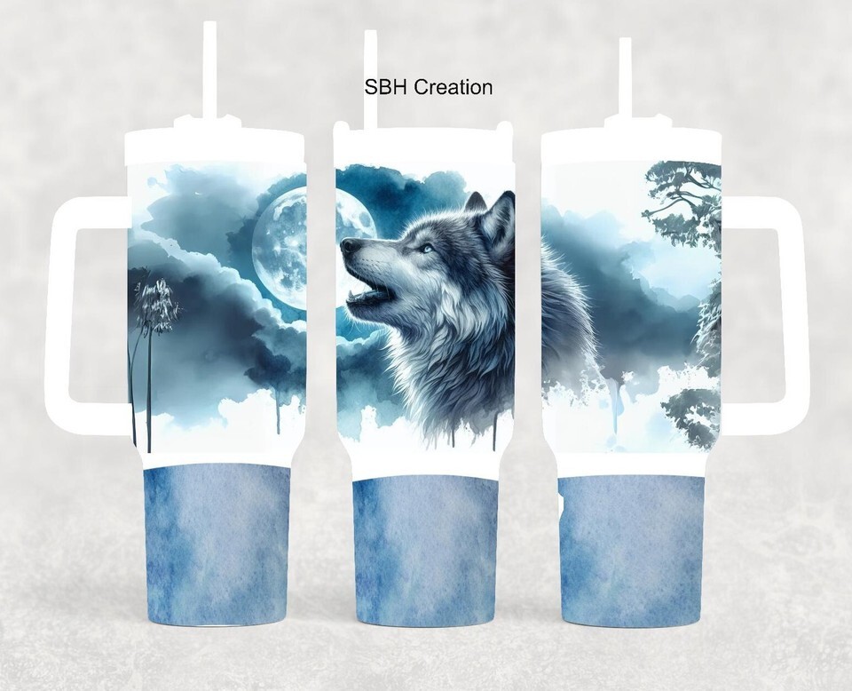 40oz Wolf at full moon insulated Tumbler with sliding lid and straw