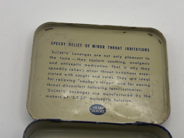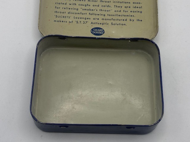 Vintage Metal Sucrets 24 Throat Lozenges Tin Box Container Sharp & Dohme Old