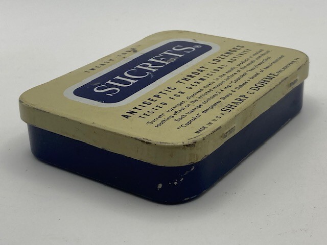 Vintage Metal Sucrets 24 Throat Lozenges Tin Box Container Sharp Dohme Old Condition as shown. Some scuffs, a couple small dings. Please refer to images.