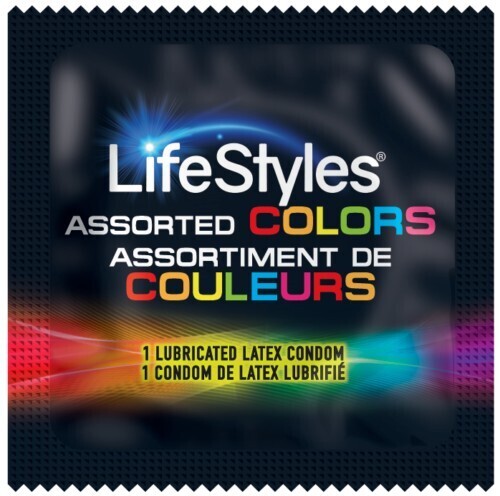 LifeStyles Color condoms, to add some night fun with the brightly hued condoms. These latex male condoms with the silicon lubricant SK-70 have a slightly flared shape to conform to the male anatomy. They have a reservoir tip, which may provide additional safety. The texture of this condom is smooth (non-ribbed). These condoms come in a variety of colors.