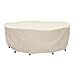 Crafted from heavy-duty, weather-resistant fabric, it's engineered to stand up to sun, rain, wind, and everything in between. Reinforced seams and sophisticated taupe piping deliver a refined aesthetic while ensuring long-term durability. The snug elastic hem and secure buckle straps keep it locked in place, even on gusty days, while built-in vents prevent moisture buildup and ballooning. With convenient reinforced handles for easy removal, this cover makes seasonal transitions effortless.