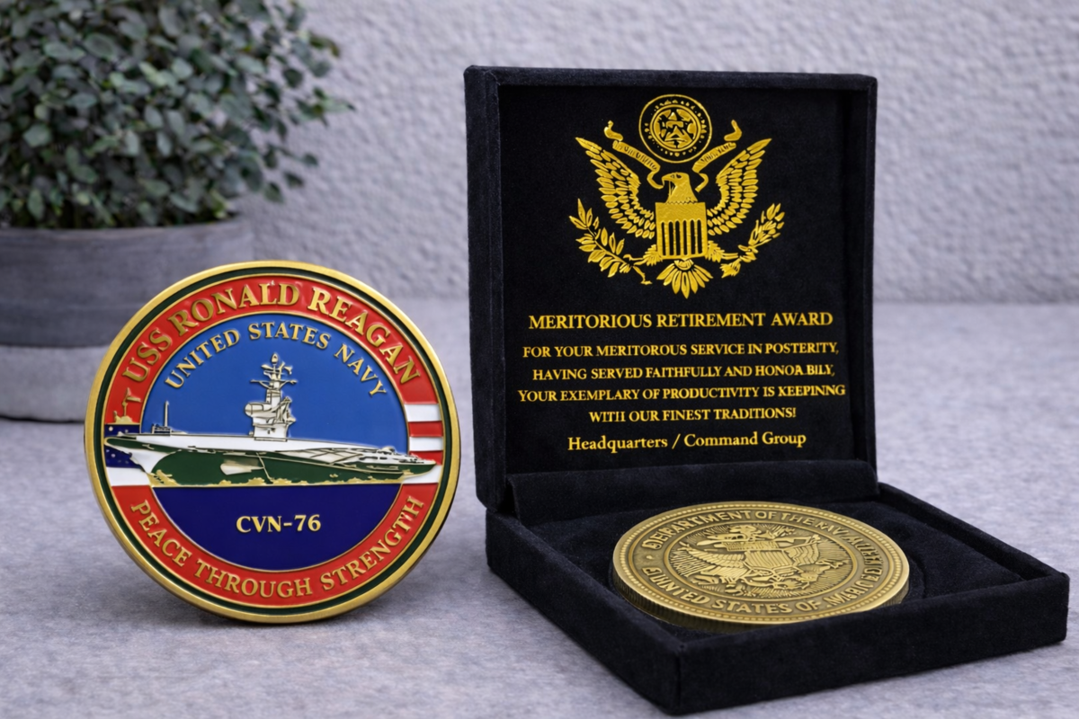 US NAVY - USS RONALD REAGAN - CVN-76 Challenge Coin USA w/ Retirement Award