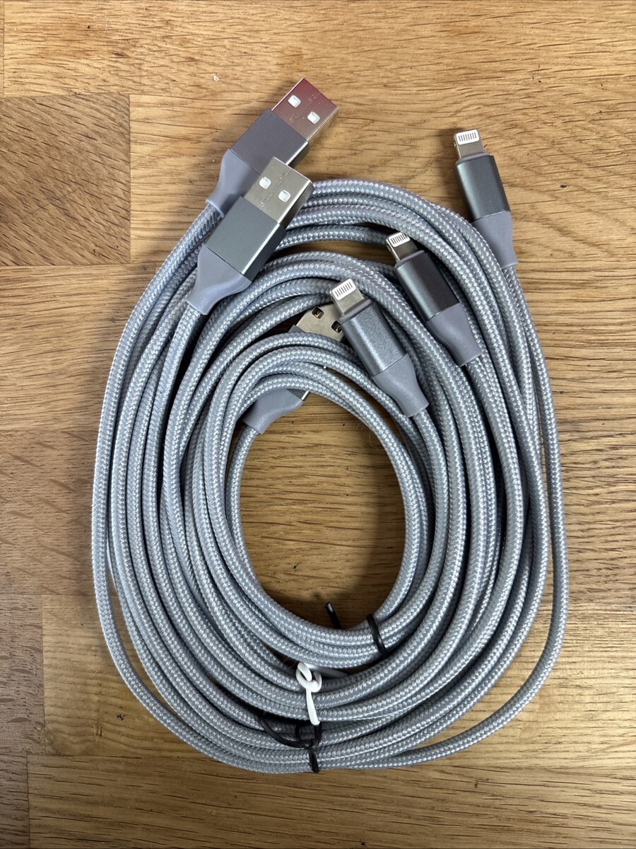 3 Pack USB Type-A to Lightning Charging Cables (1M 2M 3M Lengths)