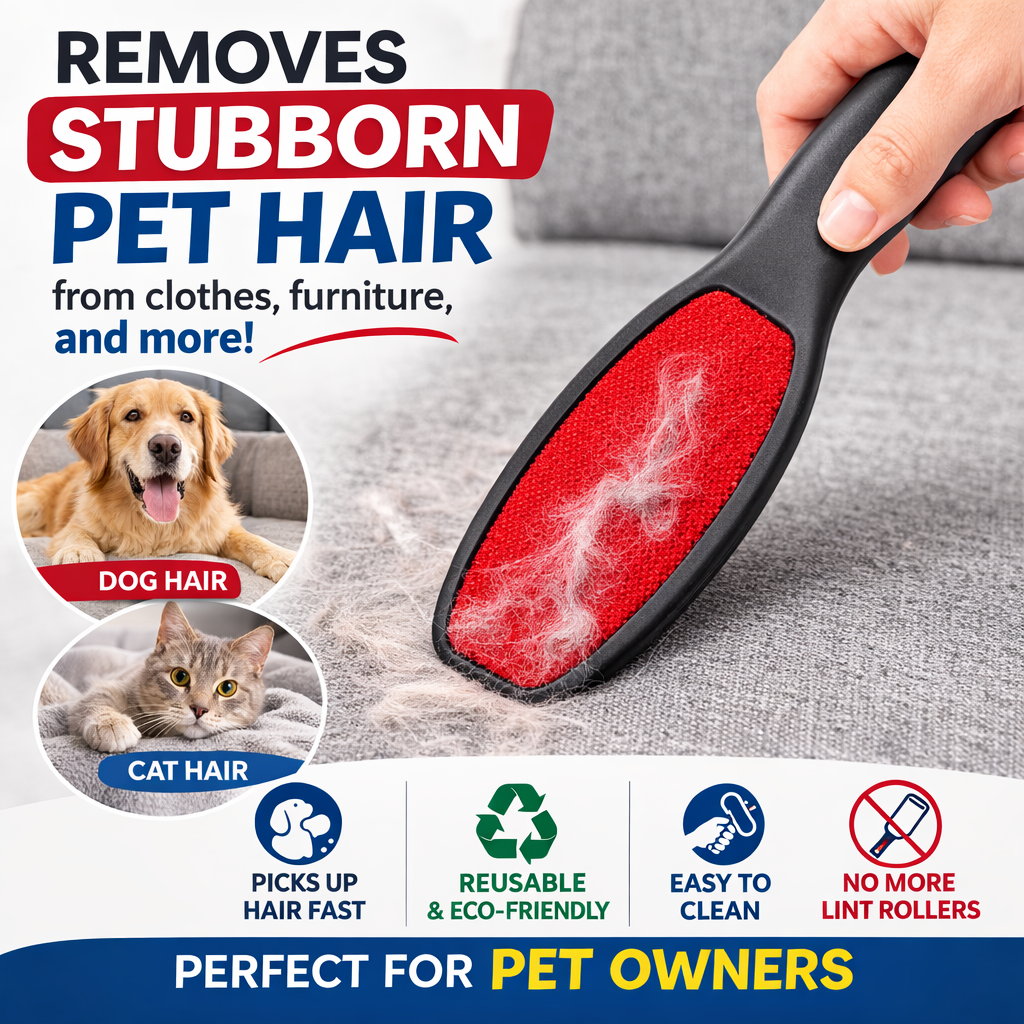 Reusable lint brush pet hair remover for clothes, furniture, bedding and upholstery.