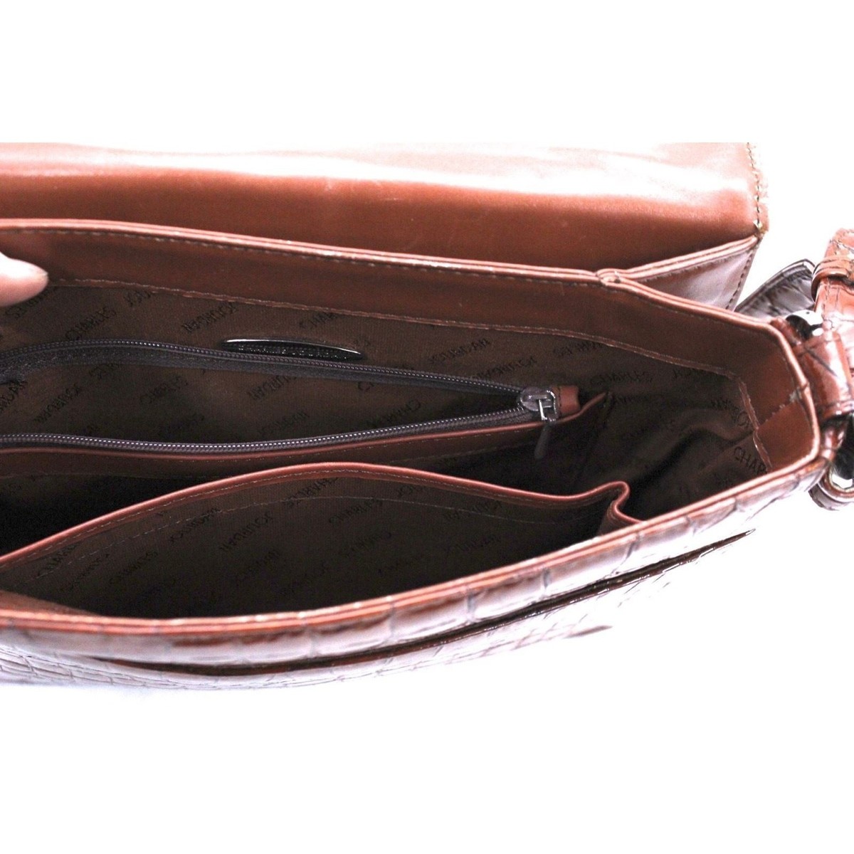 VTG 70s Charles Jourdan Patent Croc Shoulder Bag Paris Luxe Brown