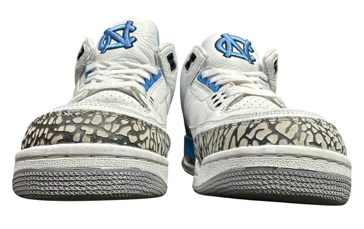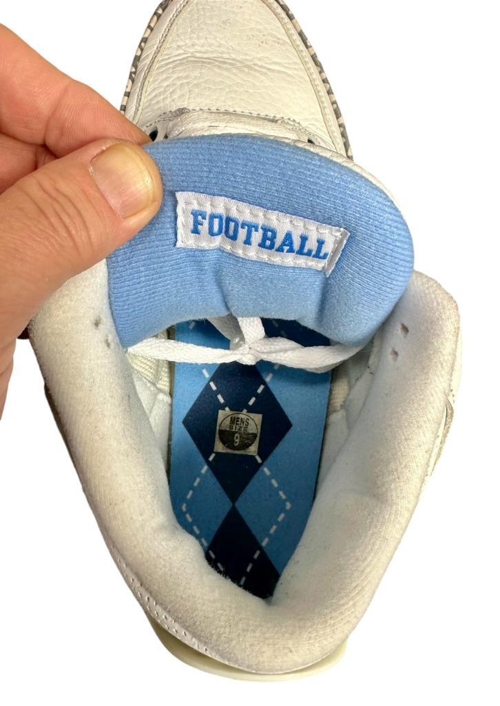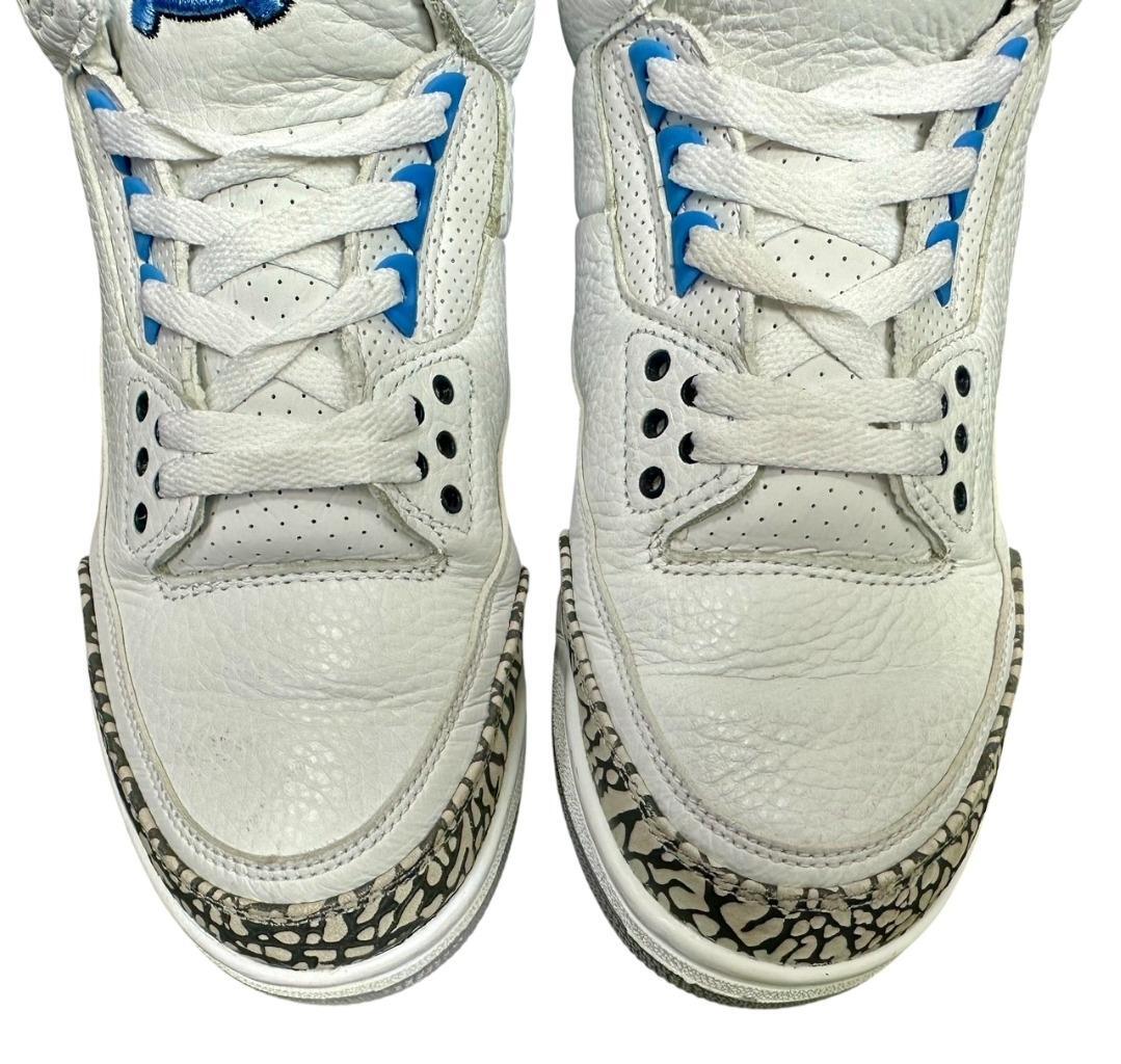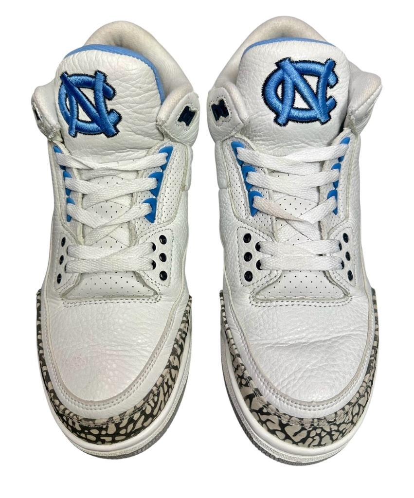 Highly Rare Exclusive Version Air Jordan 3 Retro UNC Football Player Exclusive (PE) Requested by Brian Mitchell (Brian Keith Mitchell (born December 13, 1968) is an American football coach and former professional cornerback who played three seasons for the Atlanta Falcons in the National Football League (NFL). Mitchell is the coach cornerbacks coach at North Carolina State University) AJ3-820078 CFM Sample Original Box Size 9 Previously owned show some wear and have some scuffs / scratches / spots / wrinkling otherwise in good condition Please look over all of the photos as they are part of the description because these are the sneakers that are for sale We guarantee authenticity on all of the items we sell Comes as shown