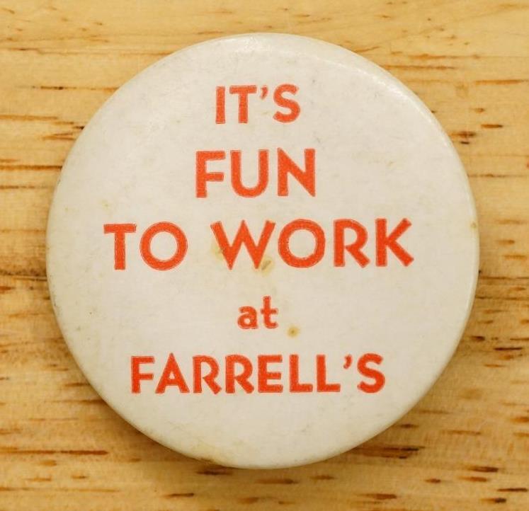 Vintage Pinback Button Portland Oregon Fun To Work Farrells Ice Cream Parlour