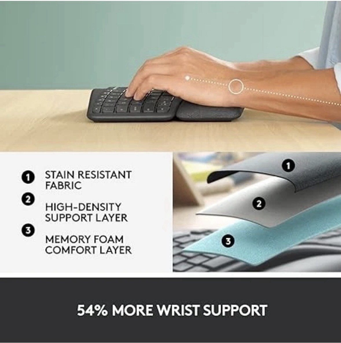 Logitech ERGO K860 Wireless Ergonomic Keyboard Wrist Rest 920-009166 - Black