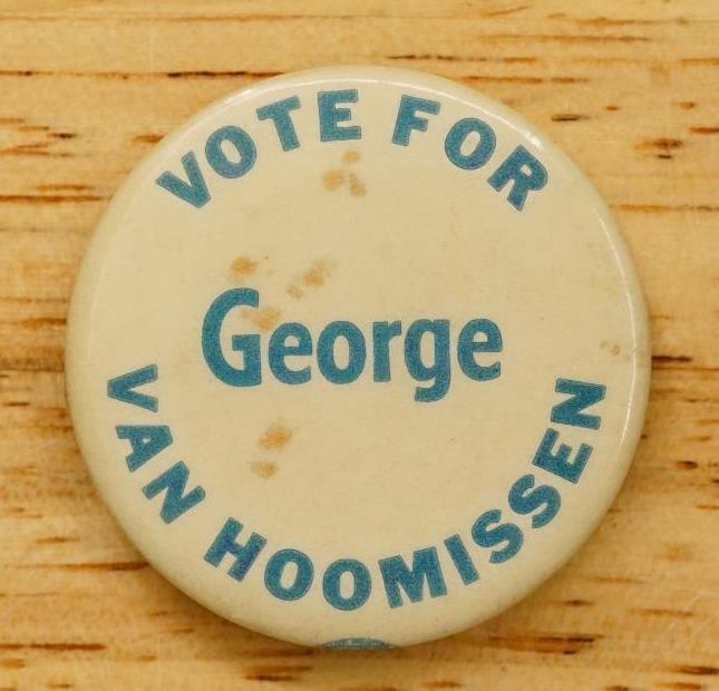 Vintage Pin Button Vote For George Van Hoomissen Oregon 87th Supreme Court Justice. Measures 1-1/2" No smoke or pet odor.