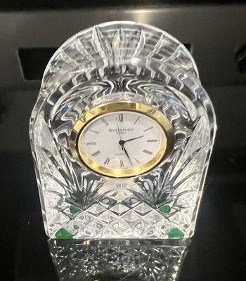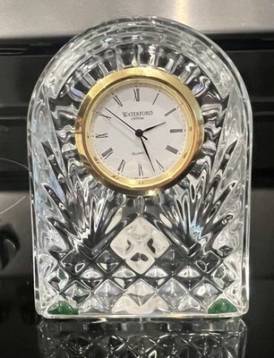 Waterford Vintage Small Arched Crystal Gold Rim Mantel Clock 3.5” Tall New Batt