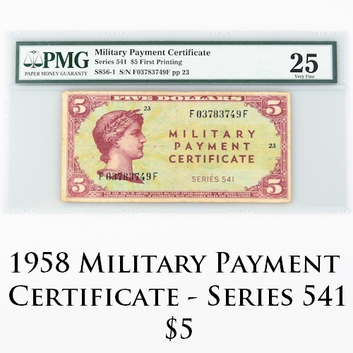1958 US Militär Zahlungszertifikat $5 VF-25 and similar items