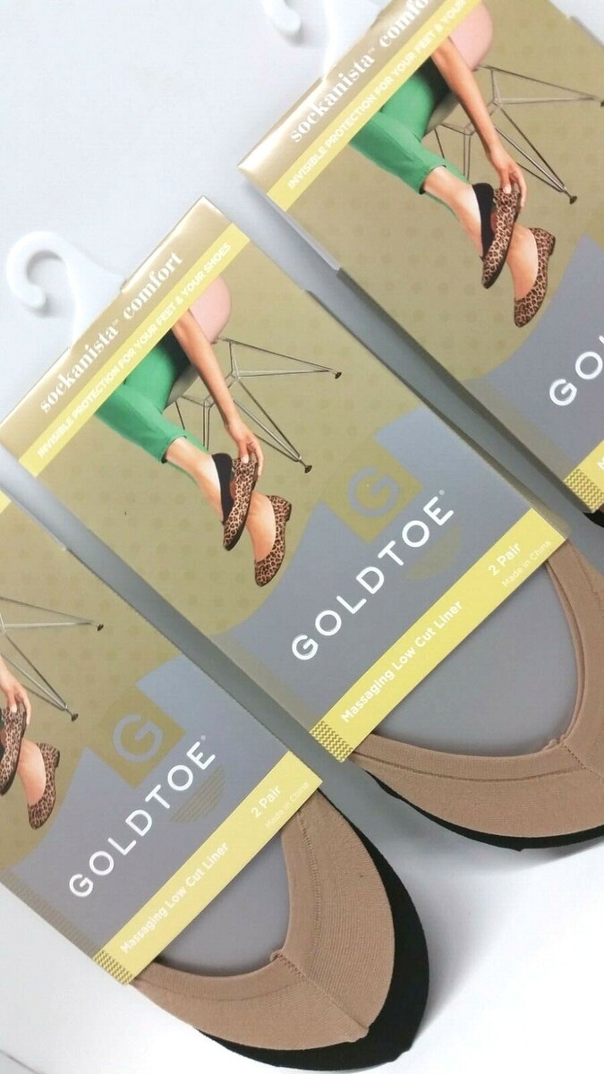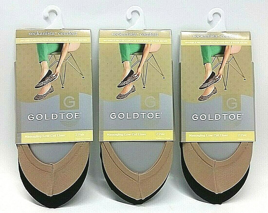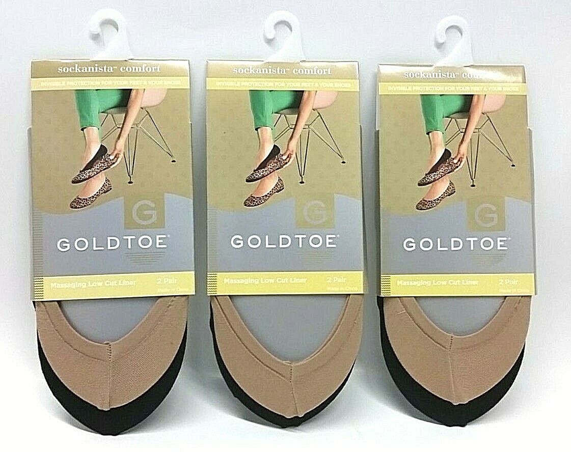 6 Pairs Gold Toe Cushioned Low Cut Liner Socks Sockanista Nude & Black Sz 5-9