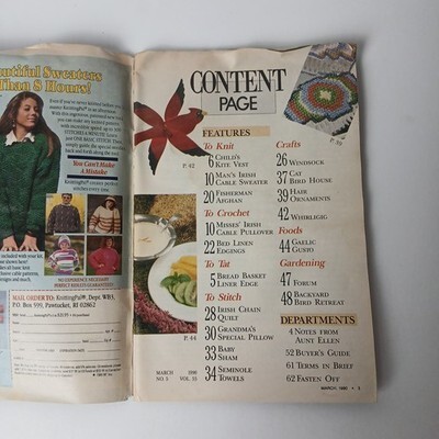 This listing is for an original copy of The Workbasket Magazine. This is the March 1990 issue. The cover has minor to moderate shelf wear. There is moderate water damage causing the magazine to slightly curl at the top. The pages are clean. There are no missing or torn pages.