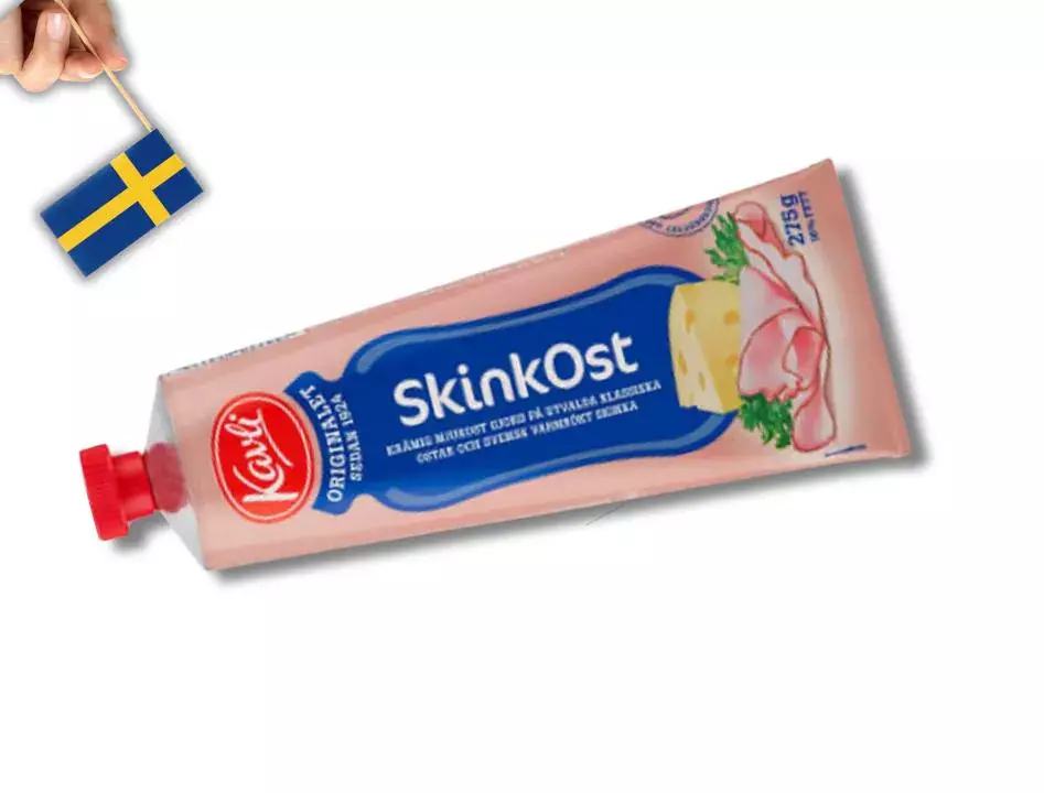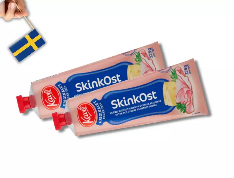 Experience the delicious combination of creamy cheese and savory ham with **Kavli SkinkOst**. This 275g (9.70 oz) squeeze tube is filled with smooth, flavorful cheese spread blended with real ham, creating a versatile and convenient option for snacks, sandwiches, and cooking. Whether you're enjoying it on a cracker, in a sandwich, or as a topping for baked dishes, Kavli SkinkOst is perfect for adding a burst of cheesy goodness with a hint of smokiness to any meal.