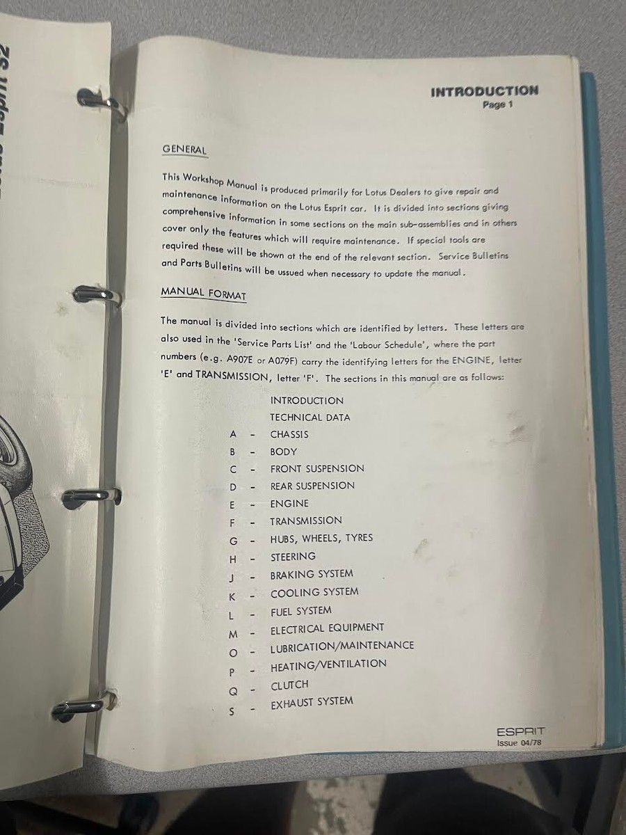 1970s 1980s Lotus Espirit Service Repair Workshop Manual Set W Part List OEM