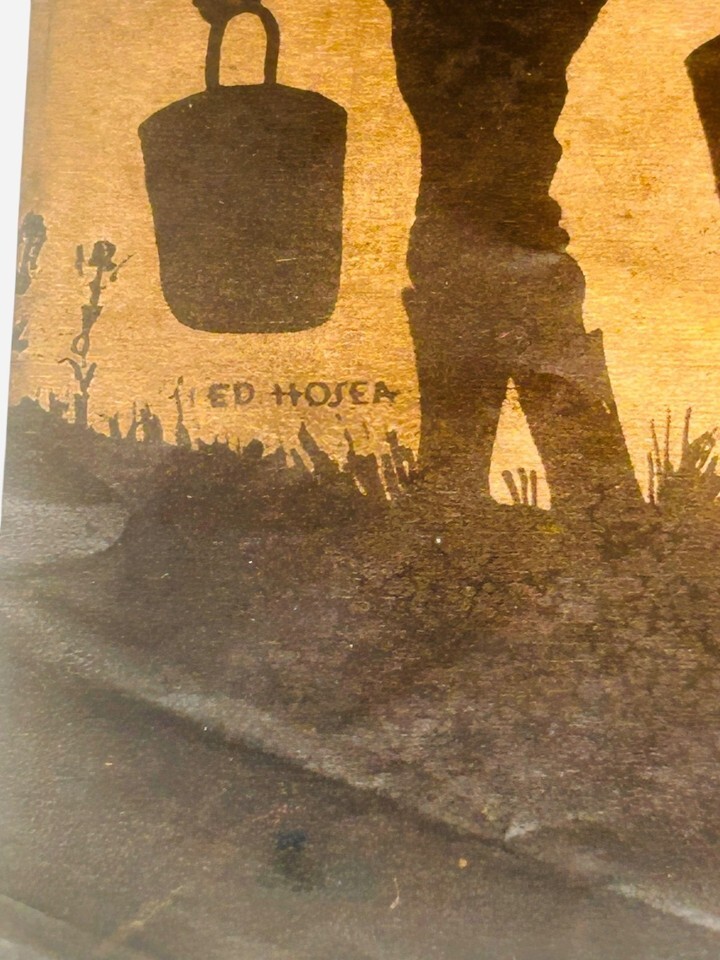 Rare Signed Ed Hosea 1930s Western Copper Foil Art Silhouette Cowboy Horse Sign