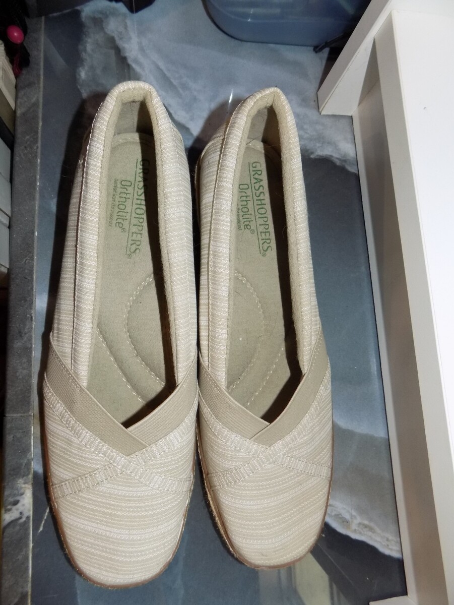 The product is a pair of GRASSHOPPERS tan brown wedges clogs espadrilles in size 9.5. These shoes are designed for women and feature a flat style with an espadrille platform. The brand, Grasshoppers, is known for providing comfortable and stylish footwear for women, making these shoes a versatile option for various outfits and occasions. The tan brown color adds a touch of sophistication to any ensemble, making these shoes a fashionable choice for any wardrobe.