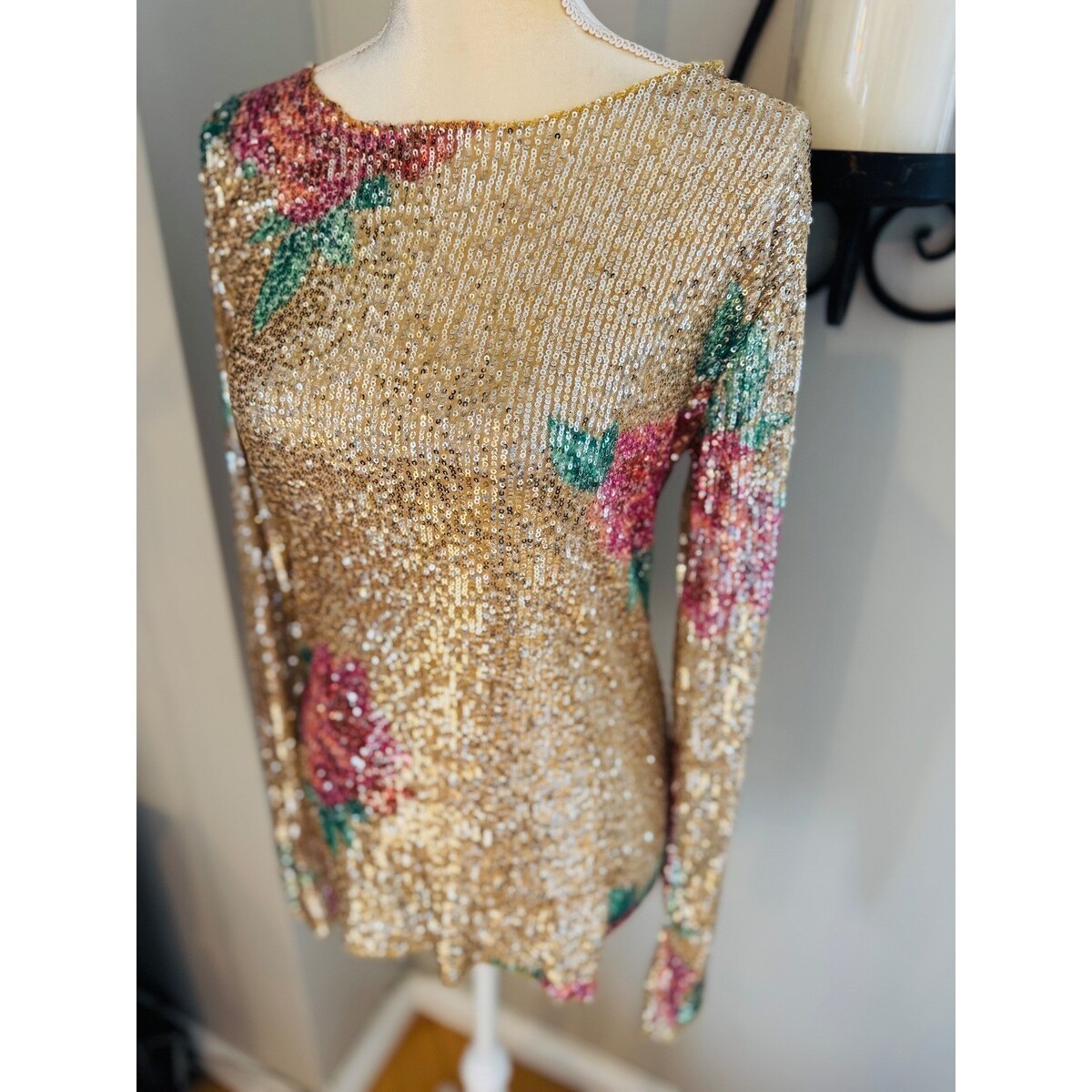Free People Gold Rush Floral Sequin Top, Champagne/Pink, Medium, NWOT