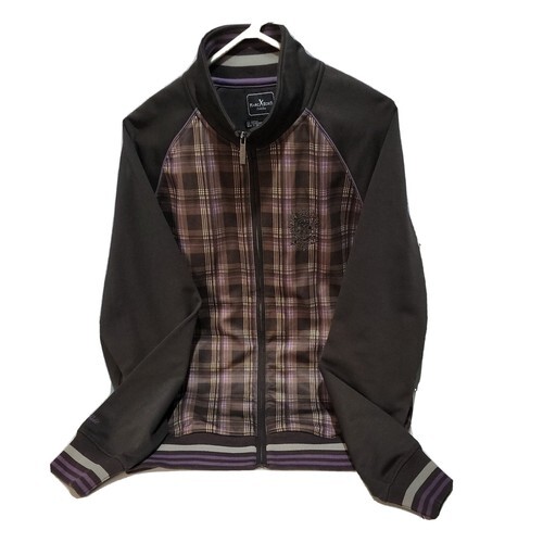 MARC ECKO Cut & Sew Plum Purple & Brown Plaid Track Jacket Coat - L