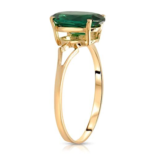 Galaxy Gold GG 14K Solid Yellow Gold Lab Created Oval Emerald Ring for Women, Ma